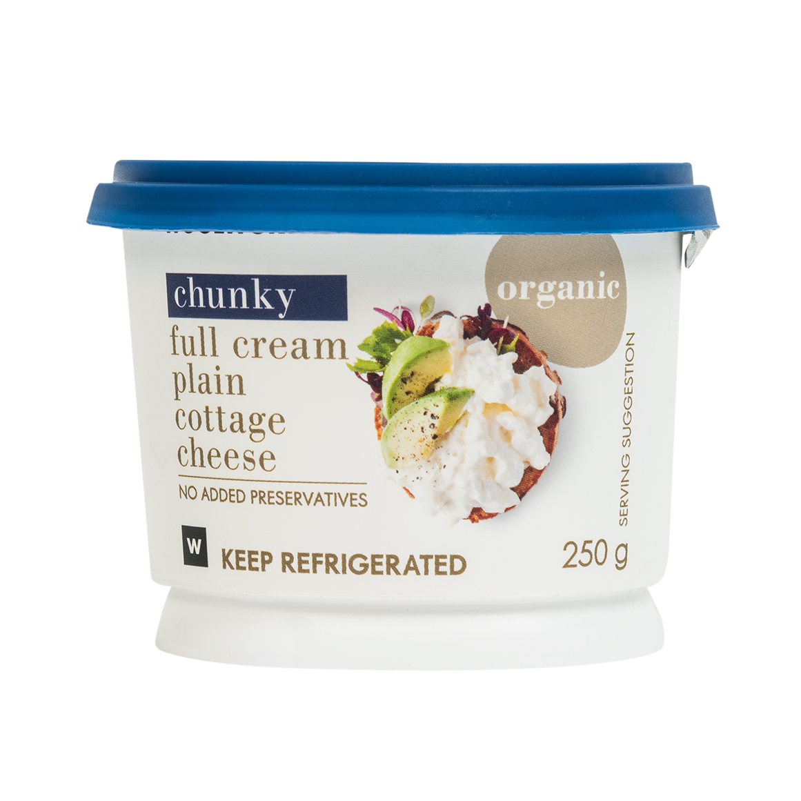 Organic Full Cream Plain Chunky Cottage Cheese 250 G Woolworths Co Za